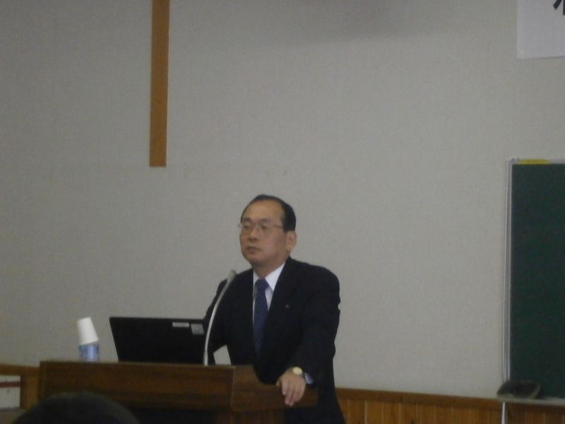 人口を増やすためには、「企業を強くして雇用を増やす事が第1。」とおっしゃており、そのあたりの話と、新人に向けた自身のご経験等を講話された。