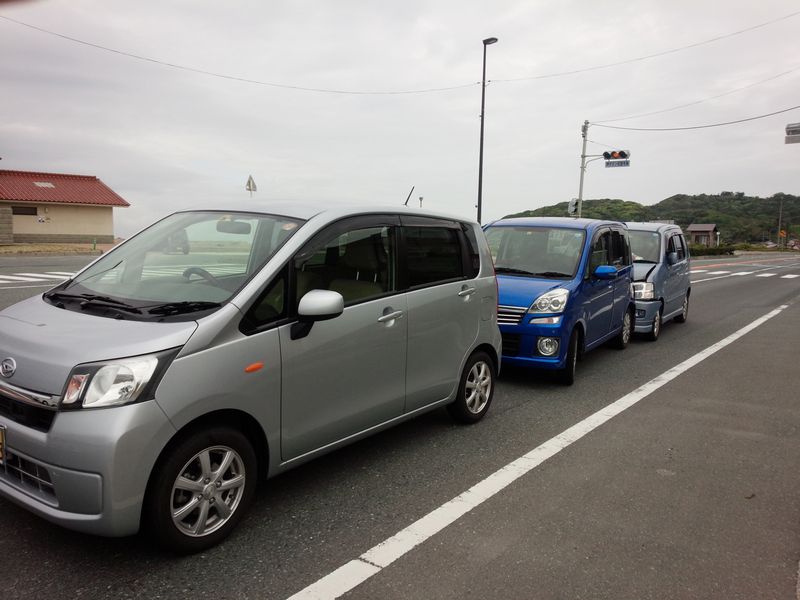すぐ「あら」と思いルームミラーを見ると、私の車の後ろの車に、次の車が追突状態。