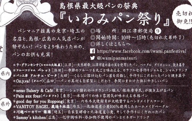 今回は、仕掛け人のI嬢さん(浜田市出身で東京在住)が、関東のパン屋さんにも参画をしてもらっての企画。