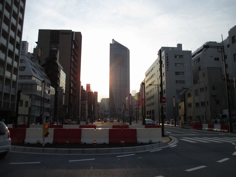 その後、新橋に移動し、食事前にホテル裏のオリンピック道路に出て虎門ヒルズを見た。