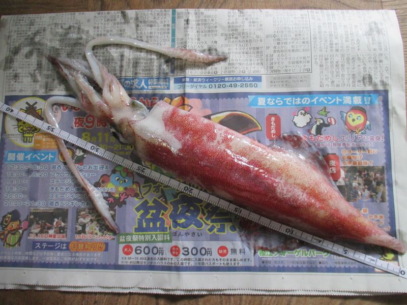 ヤリイカと比較して、重量もあるのでなかなかの手ごたえ。