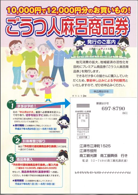 抽選とは、書いていないので応募者全員が受け取れるのだと思うが、江津市の世帯数が約12000世帯。
