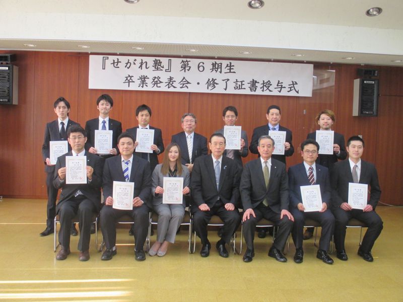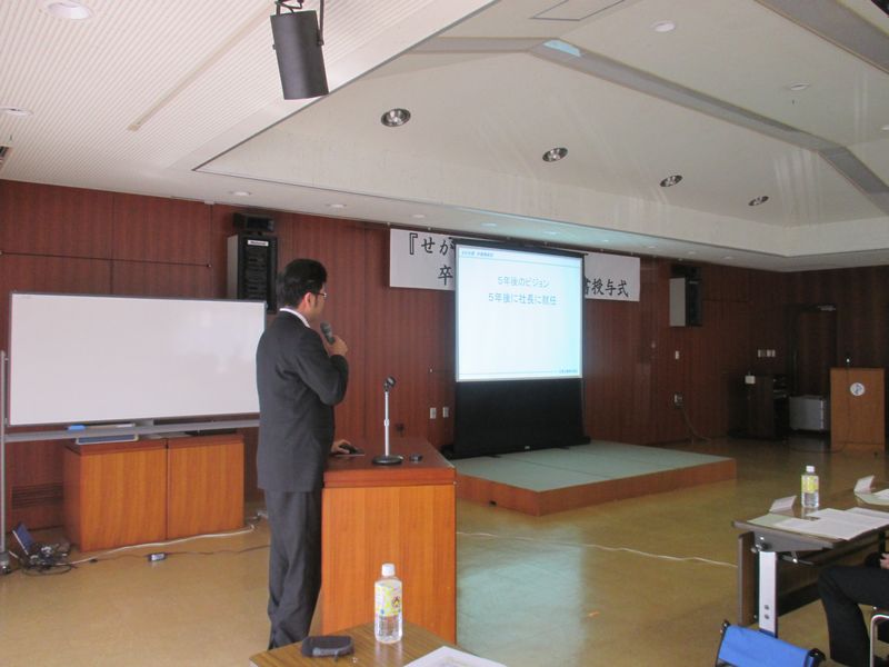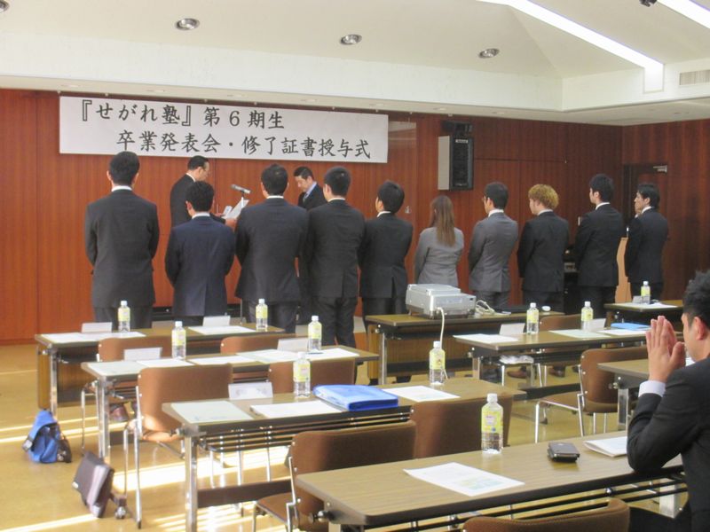 午後から、以前も報告した日本海信用金庫主催「せがれ塾」第6期生の卒業発表会及び終了証書授与式が開催された。