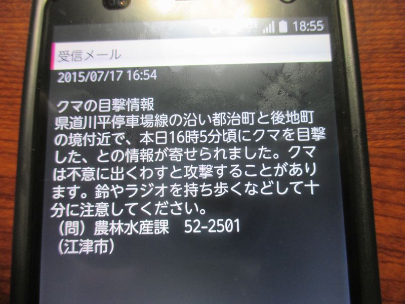 確かに、「クマが出た程度でエリアメール?」と思っていたが、やはり担当の操作ミスとの事。