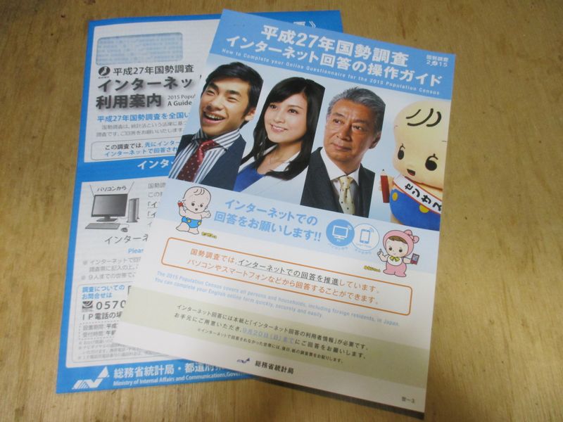 昨日、国勢調査員の方に、国勢調査のインターネット回答の利用案内を持って来て頂いた。