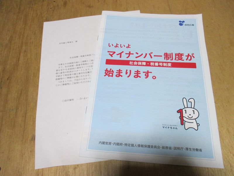 開けてみると、「市内個人事業主様 社会保障・税番号制度パンフレット送付について」