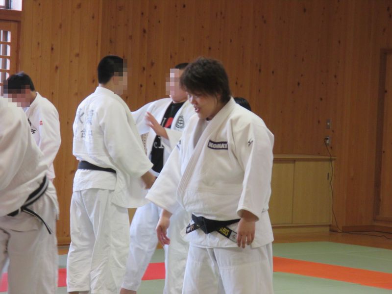 説明会終了後、昨日から江津市に来ている、2012年ロンドンオリンピック銀メダリスト杉本美香さんが、柔道教室を開いておられ、生徒は柔道着に着替え参加。