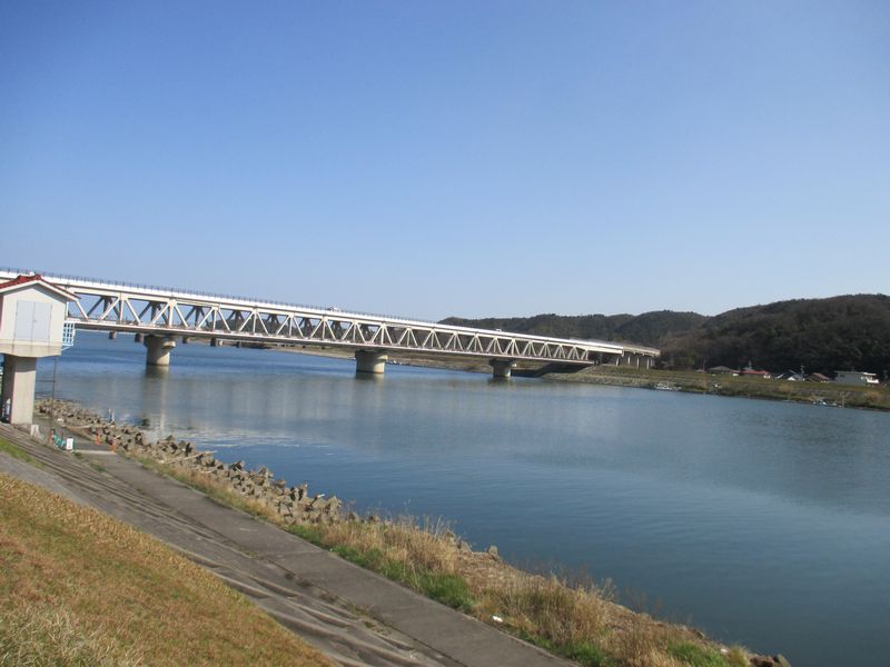 いつもの江川の土手からの景色ですが、雲一つなく晴れていました。