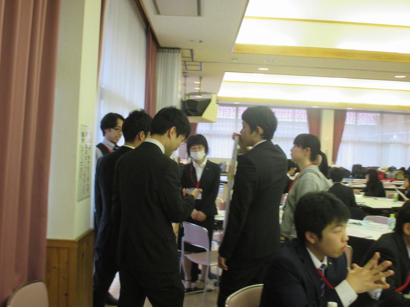初日の朝で、まだまだ緊張気味の新入社員諸君が・・・・。