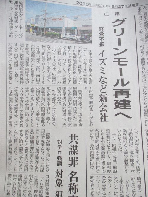 朝一番、いつもの通り山陰中央新報の新聞を読もうとすると、いつもは見ないチラシの中がチラッと見えて、見覚えのある文字が見えた。