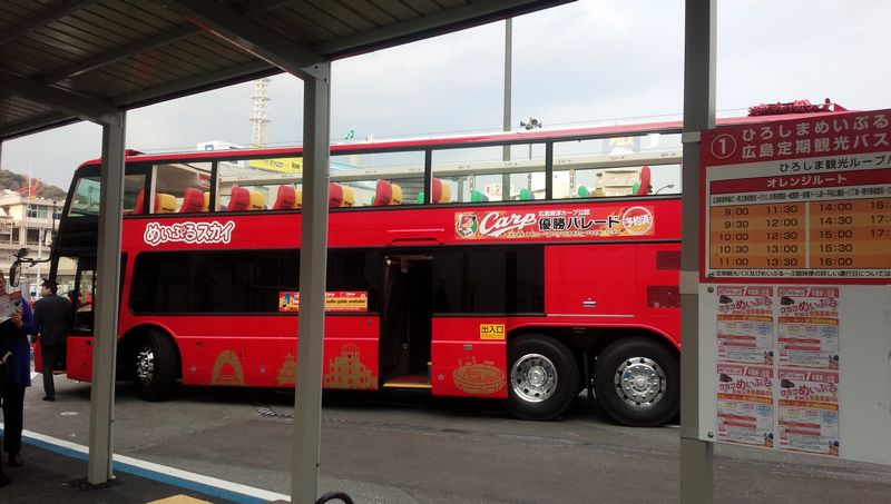 昨年5月に、広島駅で、「広島東洋カープ 優勝パレード 予約済み」と書いた、2階建てオープンバスを見ていた。(写真は、昨年5月撮影)
