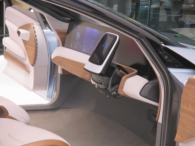 日産ギャラリーでの、自動運転車等の展示に、興味津々。