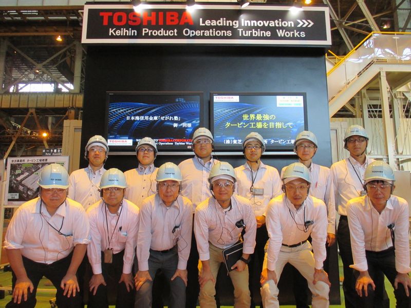 昼食を取り、13時に全員が揃い、東芝タービン工場へ。
