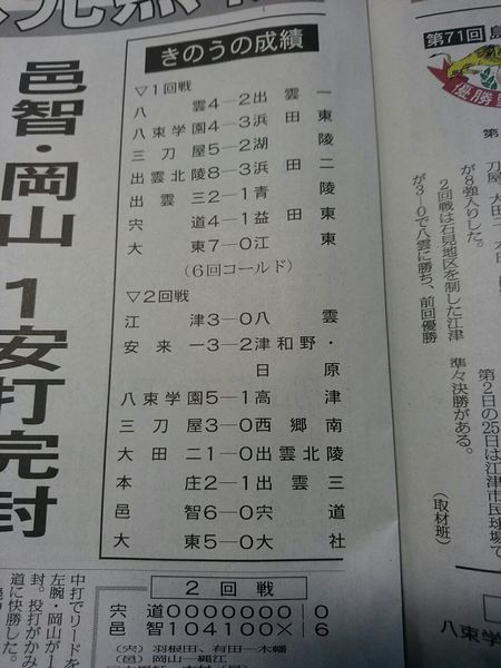 高校野球では、今日、開星高校ー益田東高校の決勝。