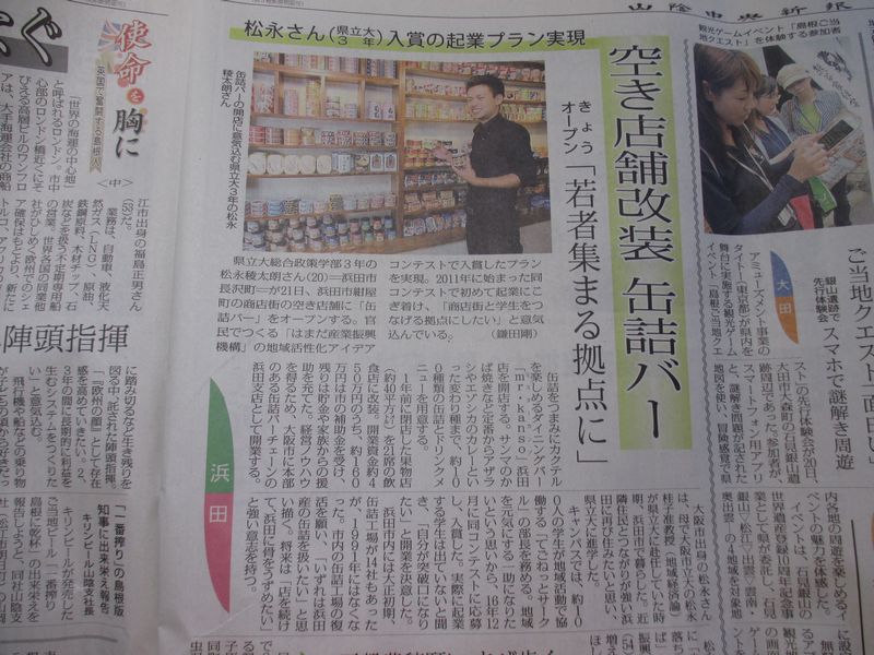 このコンテストのプレゼンを聞いていないので、「浜田市に何故缶詰バー?」の詳細が判らないが、この地域に新たな風が吹く事を期待したい。