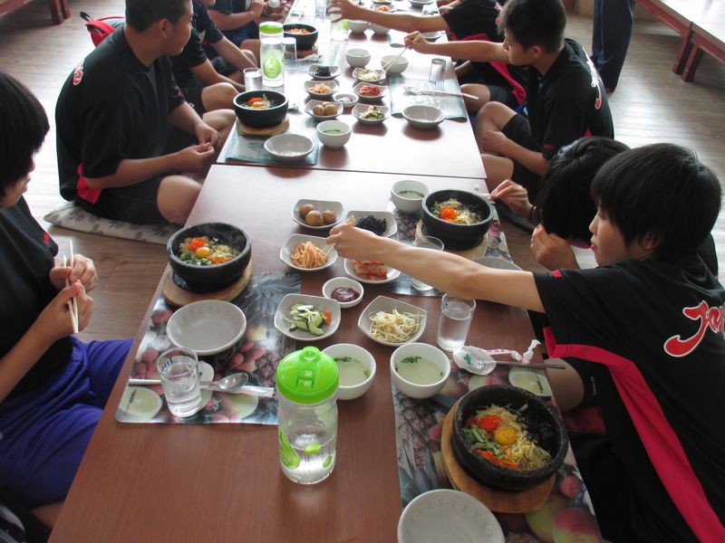 生徒たちは、初めての韓国の生徒たちとの合同練習で、くたびれた様子。