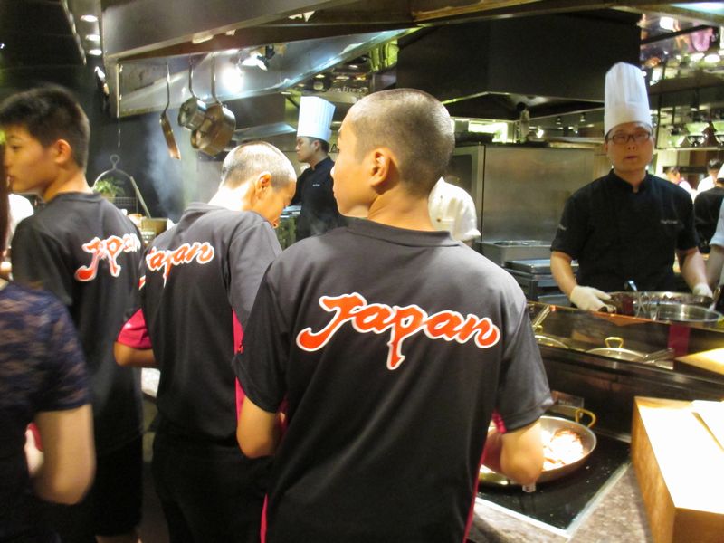 歓迎パーティーでは、大バイキング場に興奮気味。