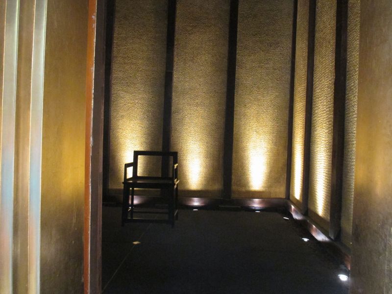 写真のライトアップされた塔の上の方がステンドグラス(?)かな、神社とは思えない感じ。