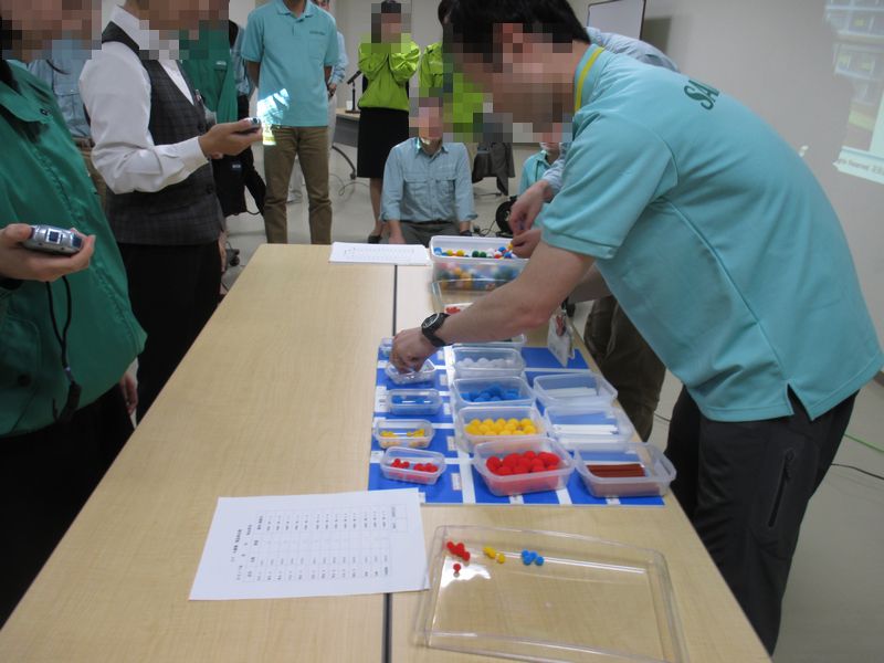 昨年は、講義のみだったが、今回は、以前紹介した5Sを模擬したボードを使っての実験も・・・。