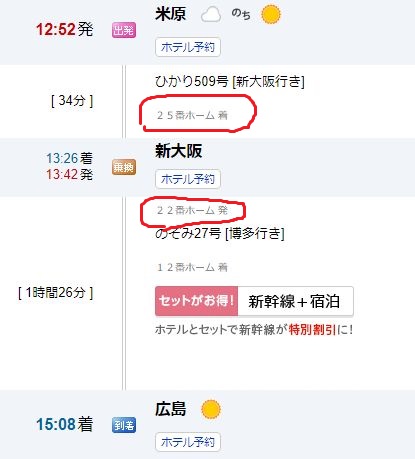 広島駅に到着すると予想に反して、上り(東京方面)は、ほぼ時間通りの運行。