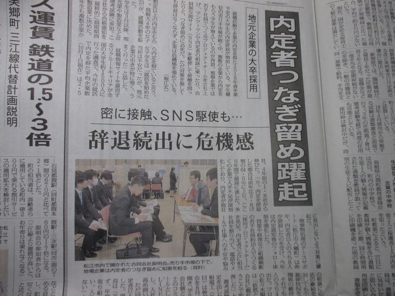 今年は、売り手市場になっているだけに、この現象は、うなずけるが島根の企業にとっては、大問題になる。