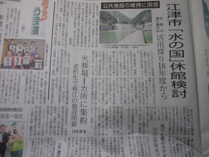 今日の朝刊によると、江津市の「水の国」を休館すると。