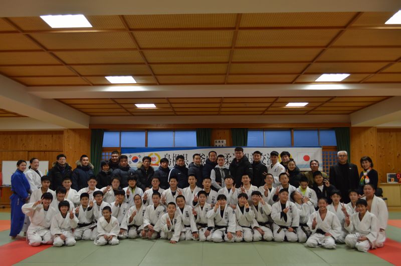 こんな雪が降る中、今年も釜山から柔道中学生が来て、島根の中学生と交流。