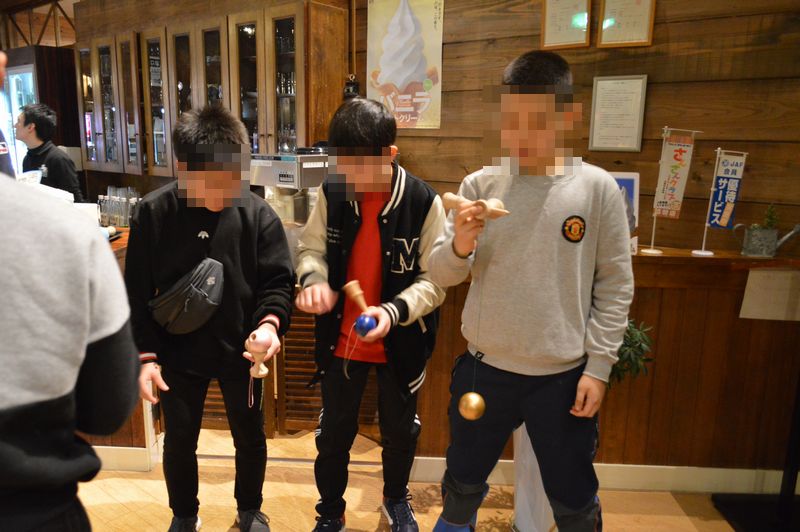 “けん玉”が数個用意されていて、釜山の生徒達は、一瞬にして”けん玉”の虜。