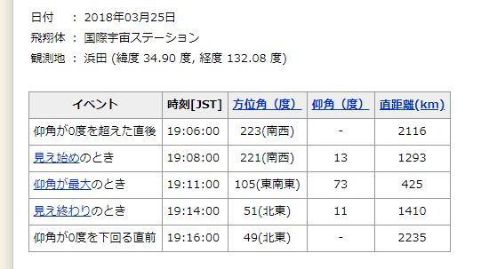 上記HPで、通過時間やISSまでの距離までの表示がしてあった。