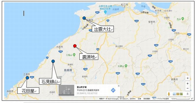 私の住む、江津市江津町は、岩盤が強いのか、震源地から30km程度しか離れていないのに、震源地近くが震度5強に対して、震度4。