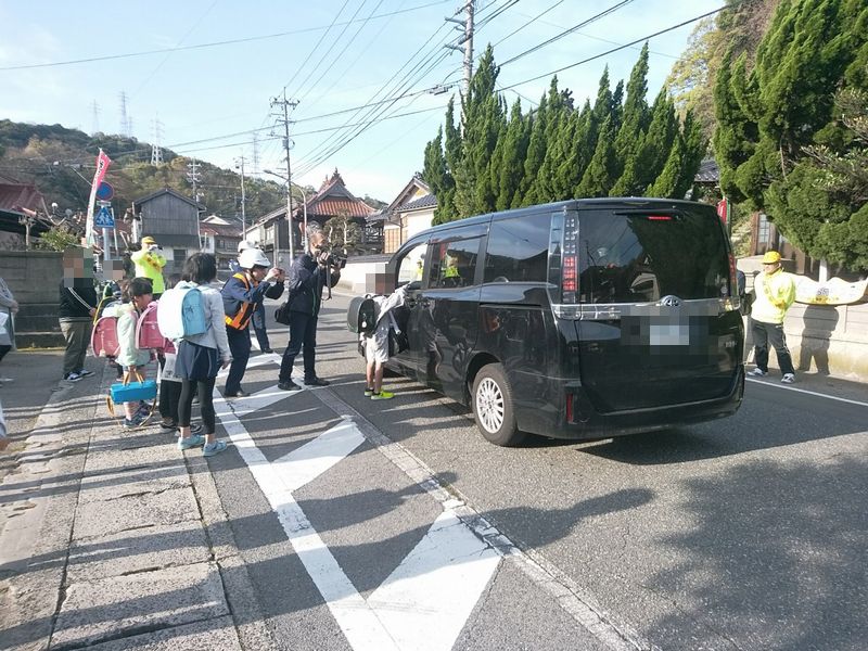 江津警察署長以下、署員数名が、車を停止させ、子供達が自分で書いた、チラシを手渡すというもの。