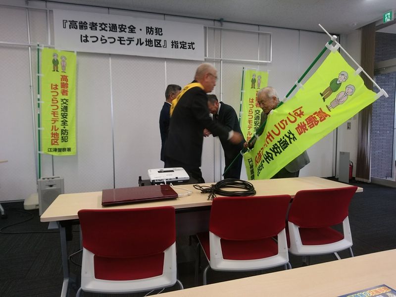 朝10時から、江津駅前のパレット江津にて「高齢者交通安全・防犯 はつらつモデル地区」指定式に、自治会長として出席。