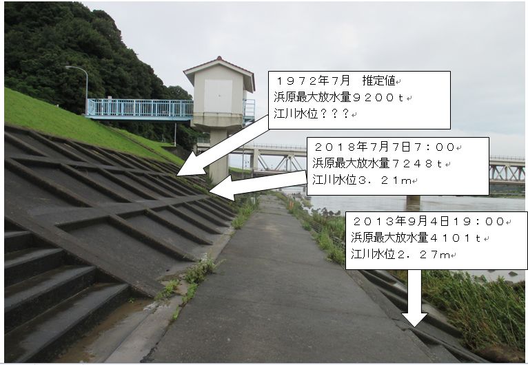 詳細とまでいかなくとも、一昨日アップした写真程度の、浜原ダムの最大放水量と各地区の最大水位の実績を明記し、各地区へも提示する事。