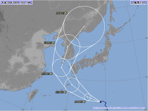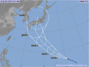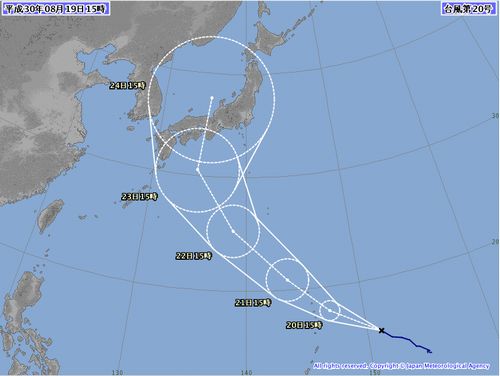 先日、台風20号の予想円の中心が、徐々に東に移動していると書きましたが、ここ2,3日、どんどん西に移動して来ました。