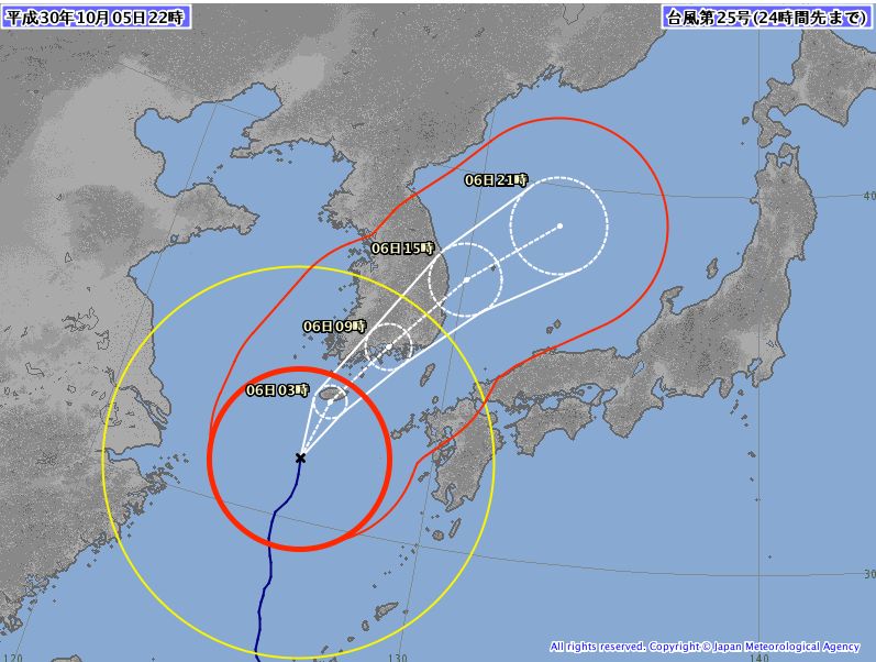 当初は、釜山のすれすれを通り日本海に入る進路だったものが、韓国本土に上陸する予報に変わった。