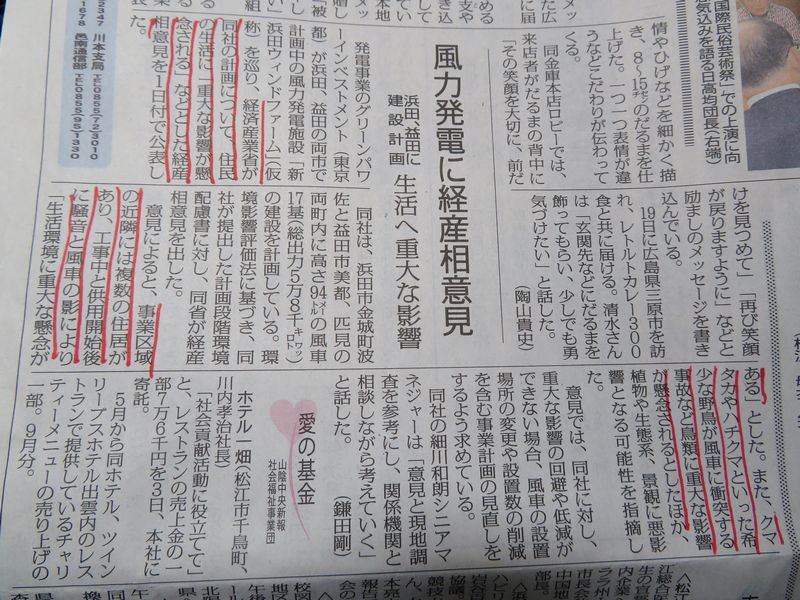浜田市、益田市で計画されている風力発電事業に対して、経産相からコメントが付いたと。