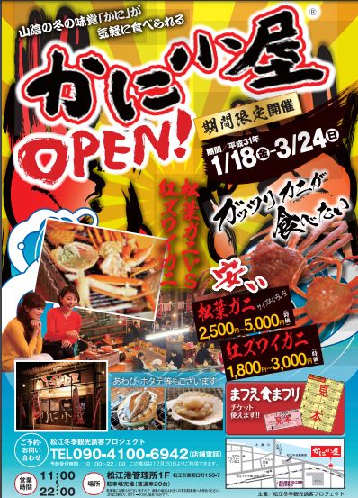 昨年も、行った松江市のカニ小屋に行ってきました。