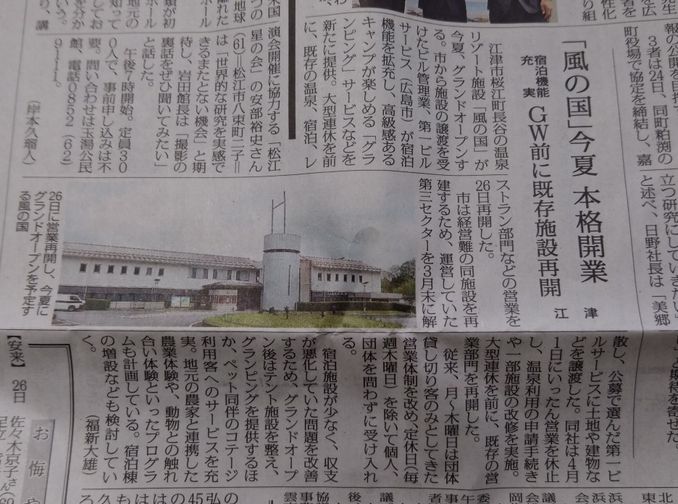 当施設は、江津市の第三セクターで運営されていたが、赤字続きで、一般企業に譲渡され、再開を目指していた物。
