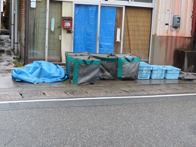 左のブルーシートの下は、新聞紙、ターンボールなど。
