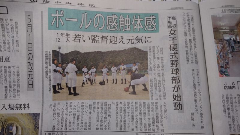 島根中央高校(旧川本高校)で、女子硬式野球部が県内初の創部となったとの事。