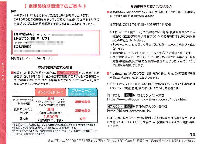 今は、1000円程度の違約金と改訂されたはずだが、更にこの様な連絡をくれるとは・・・。