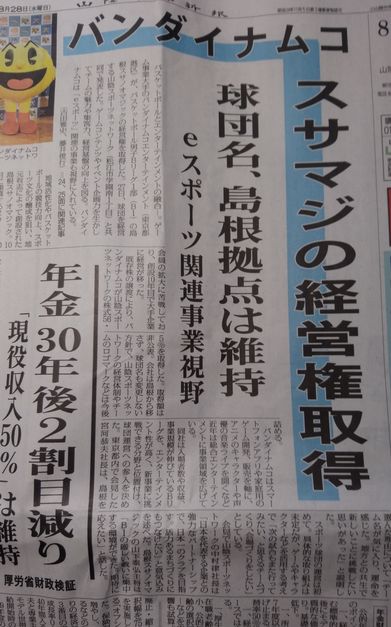 新聞によると「球団名、島根拠点は維持」としての球団経営となる事は、大変ありがたい事。