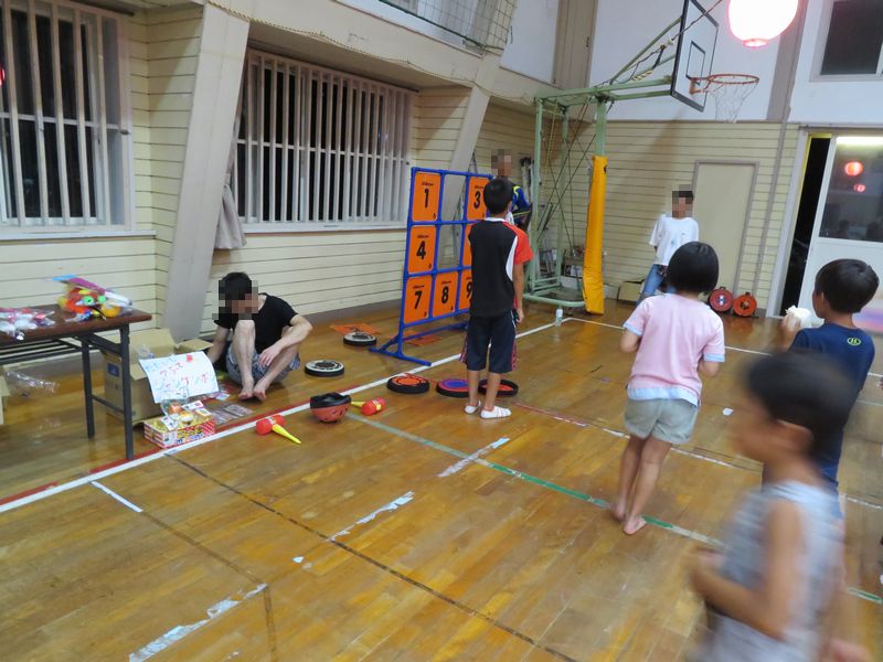 体育館の中は、空調が無く、おそらく台風の生暖かい風もあり、30℃越え(?)