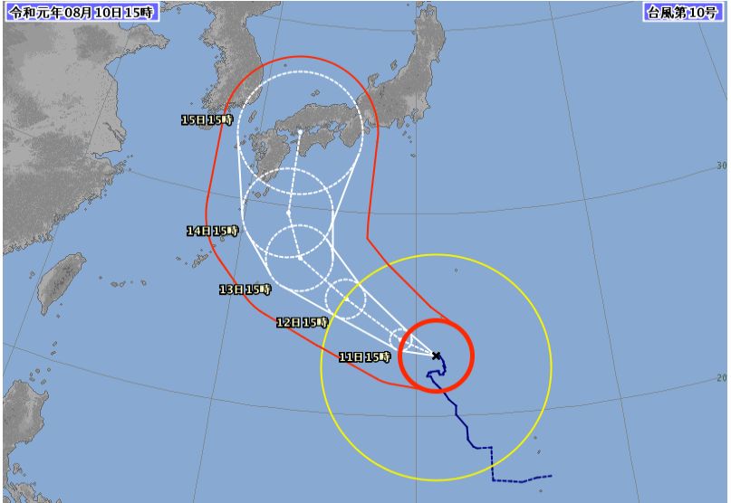 最近は精度がどんどん上がり、予報円の真ん中を進む事が多い。