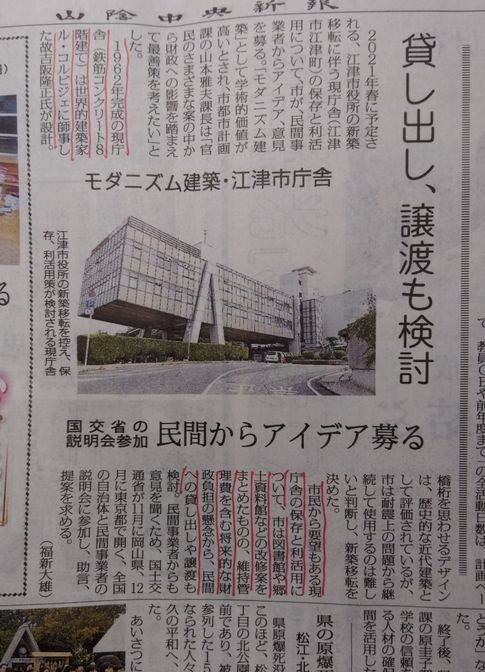 今日の山陰中央新報に、現市役所の建物をどうするかの記事。