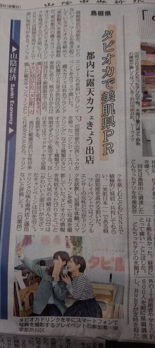 今朝の朝刊に、「タピオカで美肌県PR」との記事