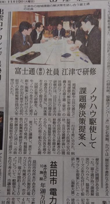 「ノウハウ駆使して課題解決策提案へ」として、地域医療機関、温泉施設等に聞き取りを行い、課題解決の案を作るというもの。