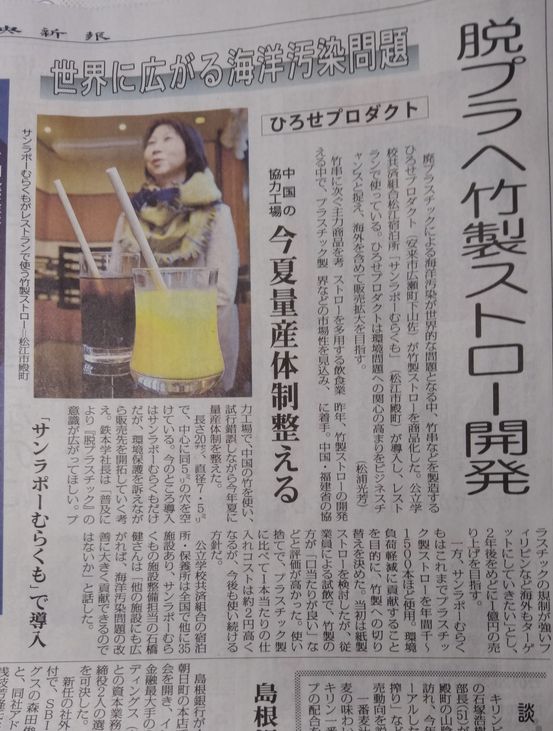 タピオカの飲み物を飲むときは、太いストローでタピオカを吸っている姿を見かけますが、そのタピオカに使えるかどうかは、判りませんが、島根県の竹串等を製造する”ひろせプロダクト”が、中国の竹を使って中国の工場で、竹製ストローを商品化した。と。