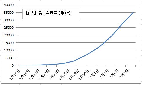 新型肺炎の感染者が中国本土で3万7198人、うち死者が811人に上った。と。