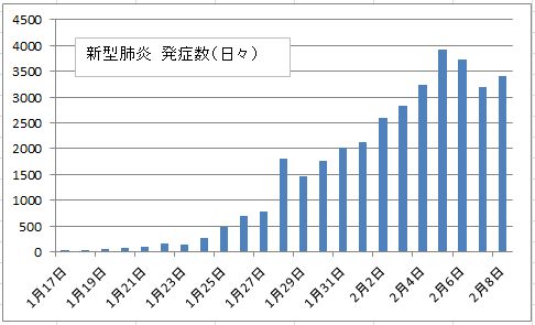 花田屋として、あちこちで講義をする際に「数値化が必要」「数値で分析」と言っている者として新型肺炎の発症データーをグラフ化してみた。